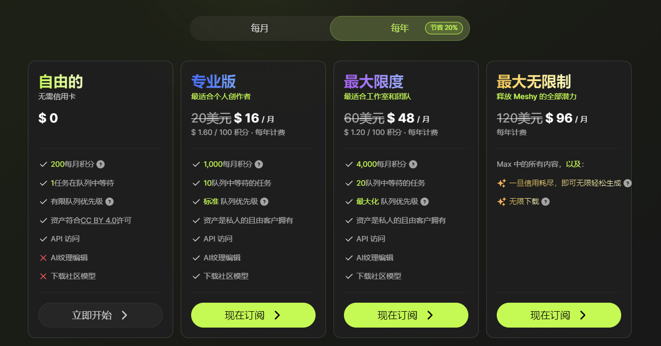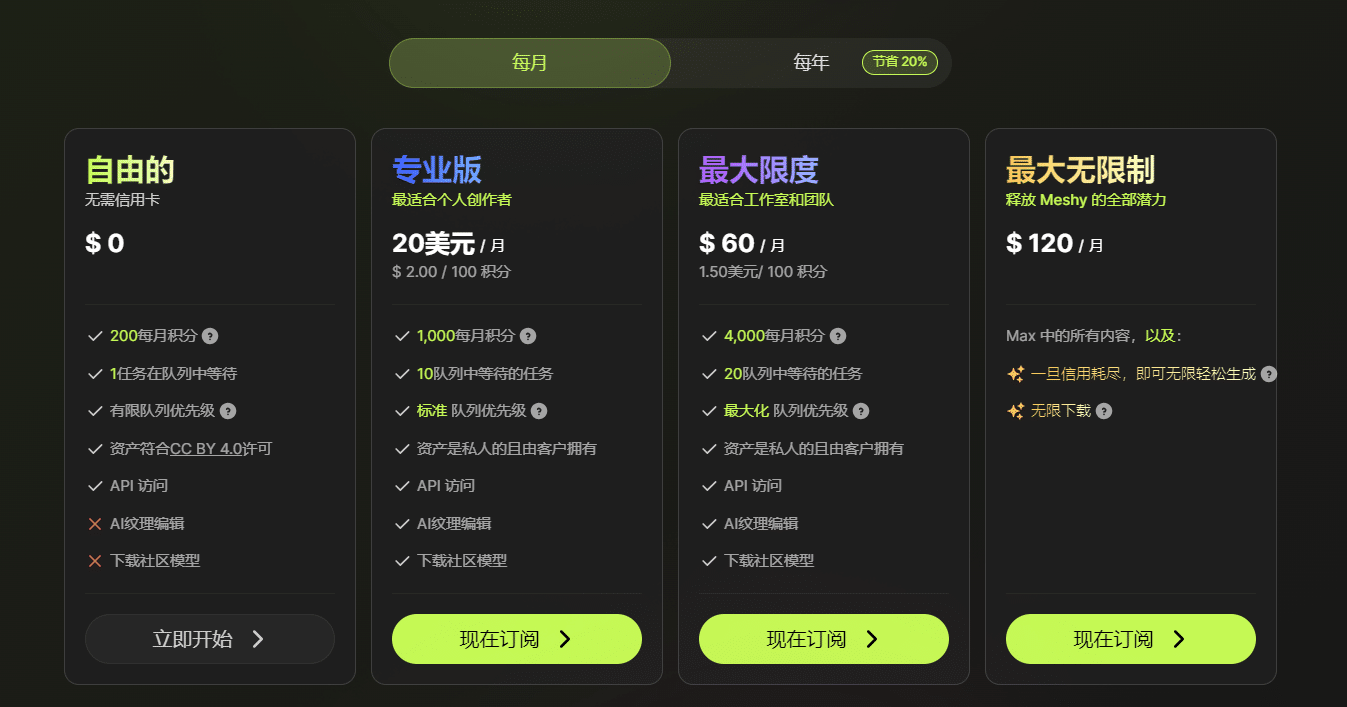 Meshy 是一款生成式 AI 建模辅助工具。它不仅可以利用提示词及图片在短短几分钟内生成令人惊艳的 3D 模型,还可以生成物体材质纹理,用户可以输入正反向提示词,选择艺术风格,并调整 HDRI 环境、表面材质及其他设置来定制个性化的模型,模型文件支持以 FBX、OBJ、STL、BLEND 、USDZ 等格式导出。另外,Meshy 的界面简洁直观,支持包括中文在内的多语言使用,具有极高的用户友好性,新手也能迅速上手操作,让不熟悉 AI、不会建模的人也能享受创造物体的乐趣。