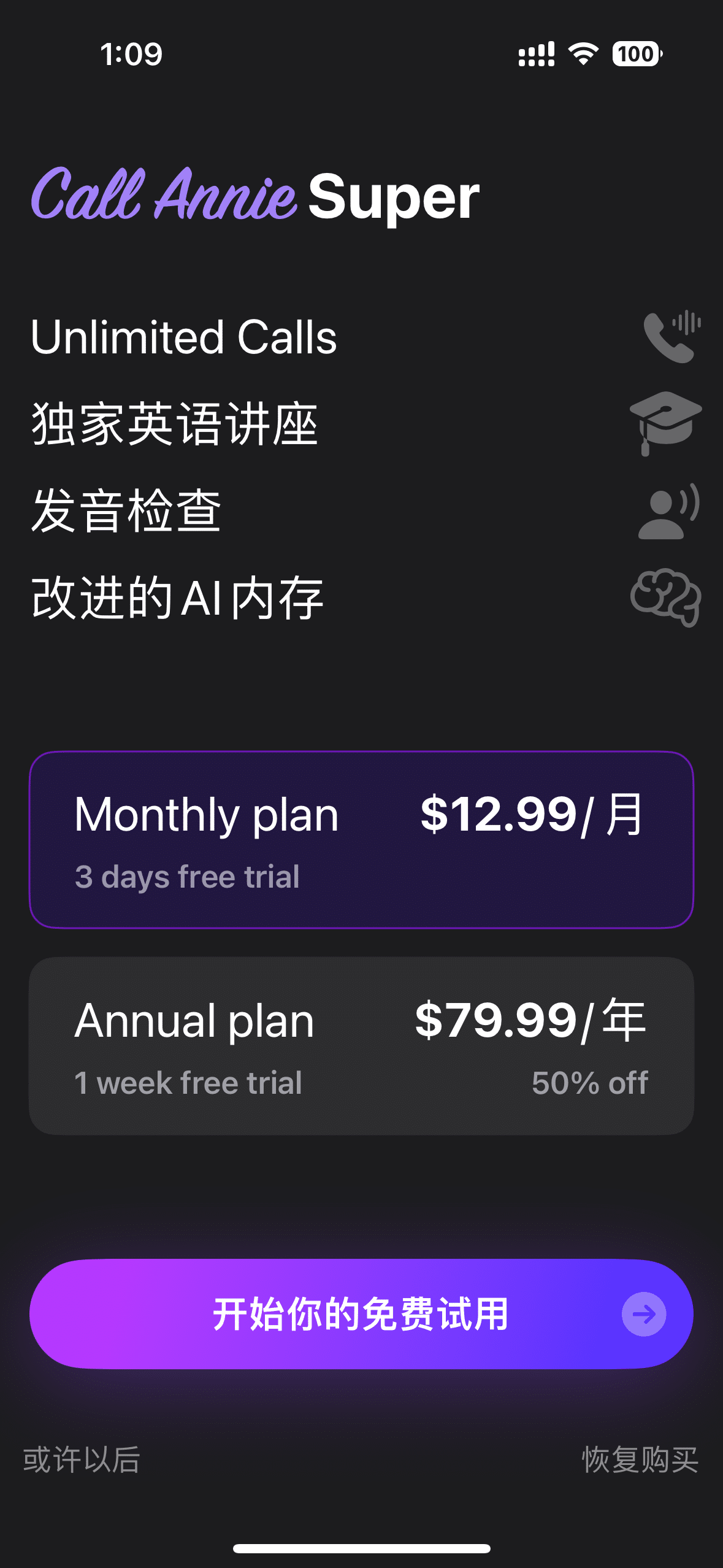 截止目前,Call Annie 已经收获来来自于国内外的众多好评,有了它的帮助,我们就可以随时随地练习地道的口语发音和即时对话能力,不必再受环境与成本的限制。