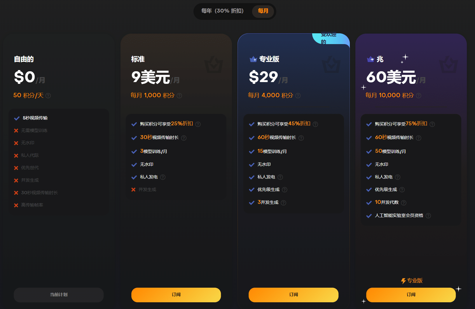 - 作品分享:用户可将生成的作品分享至平台,通过获取浏览量的方式赚取更多免费积分。
