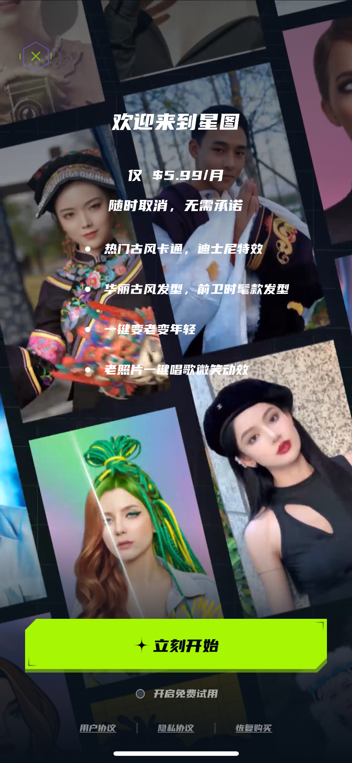 星图 ChicFace 是一款新潮的 AI 修图 APP,集合了当下流行的修图功能与社媒上最火爆的 AI 特效滤镜,帮你一键引爆朋友圈。使用星图,你可以预览自己不同发型、不同表情、不同身材、不同年龄段的样貌,也可以使用 AI 特效让自己的照片或视频转换成不同的卡通风格、写真风格,甚至是让照片唱歌、跳舞,将一张静态的照片扩展成一段动态的视频。另外星图也支持 AI 换脸、AI 修复等诸多强大的智能化修图功能,所有功能都只需上传照片即可完成操作,无需任何复杂步骤,简单易上手,非常适合热爱拍照、社媒的用户使用。