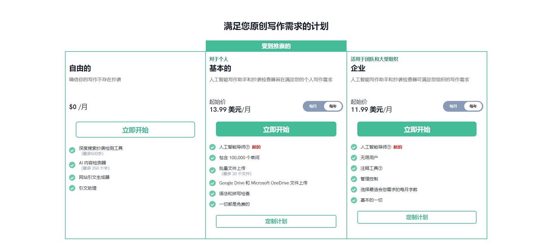 Quetext 是一款专注于文章查重、降重的工具,可以让用户轻松地维护文章的原创性。Quetext 的深度搜索技术(DeepSearch)可以分析用户所上传的文本,并快速精准识别其中的抄袭与人工智能生成的不当内容,然后生成相应注释与对照,辅助用户进行降重与去 AI 化。Quetext 支持多种外语语言,如英文、西班牙语、法语等,可以用于论文、文案等内容的降重,是一款非常适合留学生、教师、文案人员使用的论文查重神器。