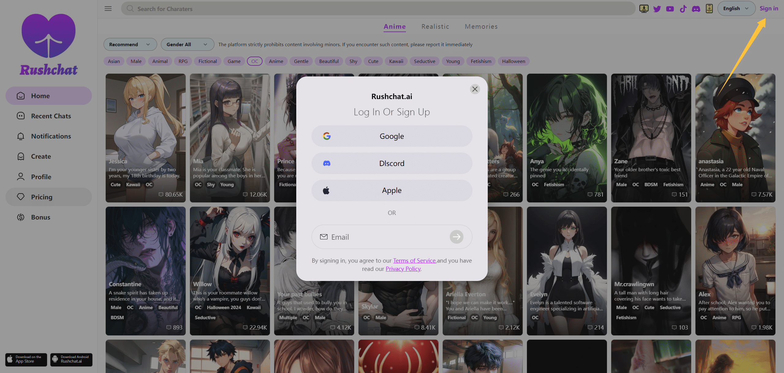 Rushchat.AI 是一款海外热度极高的支持 AI 角色扮演的在线聊天工具。Rushchat.AI 提供海量设定丰富的虚拟角色,包含二次元角色,及三次元拟真角色,用户可以利用标签分类筛选,并按照角色性格、前情描述来选择喜欢的 AI 角色并与 TA 聊天,角色们不仅会用文字回复你,还会用图片回复你。Rushchat.AI 并不限制你们的聊天内容,官方明确说明了此软件支持 18+聊天(严禁未成年内容)。Rushchat.AI 还支持保存记忆, AI 角色会记住你想让 TA 记住的一切信息,例如你的喜好、关系发展、事件等等。