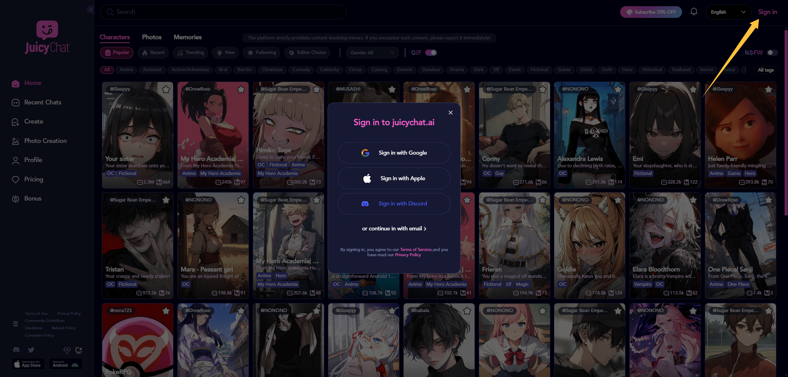 JuicyChat 致力于为用户打造高度沉浸、丰富有趣、拟真自然的聊天体验,如果你想与动漫角色对话,或是想要一个 AI 伴侣、聊天搭子,抑或是想为你的小说、漫画作品寻找一点创作灵感,那么就可以来试一试 JuicyChat 。