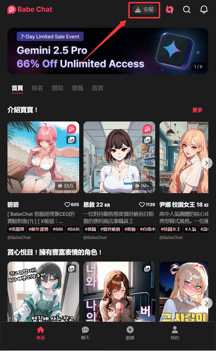BabeChat 页面支持中文显示,但其大部分角色都是韩语角色,我们在聊天时只需请求对方说中文即可。